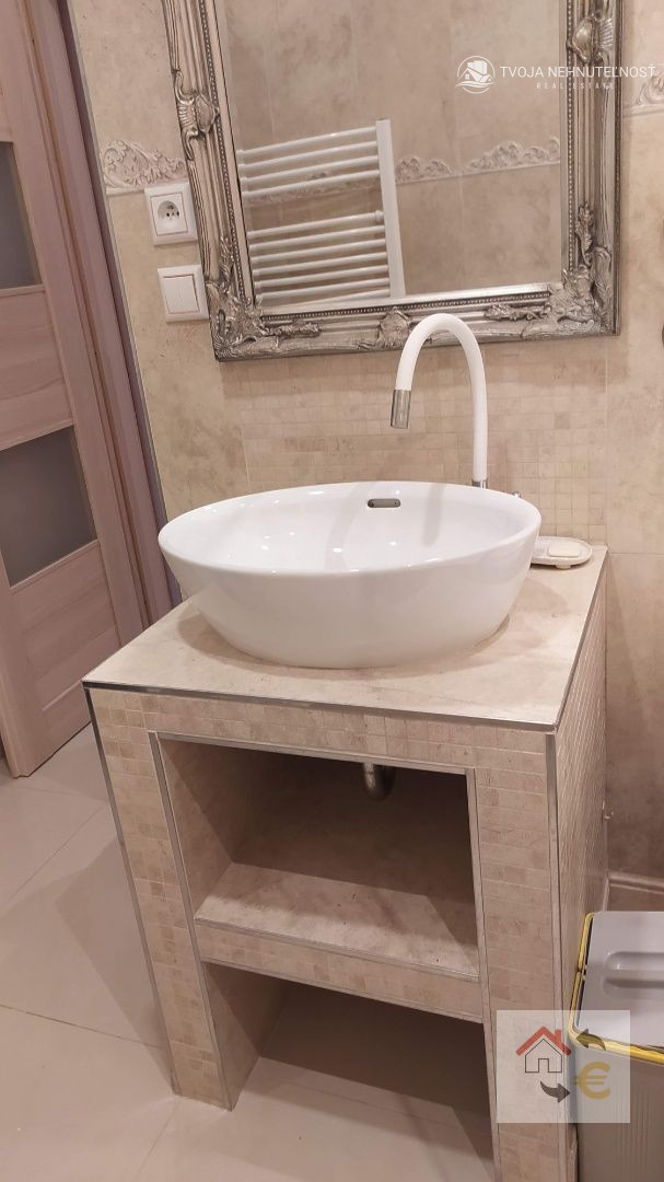 Ponúkame Vám na prenájom nádherný útulne zariadený 3 izbový byt v Prešove, časť Nižná Šebastová, ulica Slánska. Ide o byt v 10 ročnej novostavbe, ktorý je kompletne vybavený všetkým, čo budete potrebovať pre spokojné bývanie. Byt je priestranný, má 78 m2, vlastný kotol, ktorým si regulujete kúrenie. V chodbe je dostatok priestoru pre odkladanie topánok, kabátov, z chodby sa ide každými dverami zvlášť do izieb, kúpeľne a WC. Na pravej strane sa nachádza spojená obývačka s kuchyňou. Vybavenie: Gauč v tvare L, obývačkové skrinky, TV, stôl a 4 stoličky, kompletne vybavená kuchyňa so všetkými vstavanými spotrebičmi. Druhé dvere sú do detskej izby, momentálne sú tam 2 skrine, a dostatok priestoru pre posteľ pre dieťa. Z detskej sú aj prechodové dvere do spálne, ktorá je taktiež plne zariadená. Postele s matracmi, skrine, komoda, nočné stolíky. Kúpeľňa je s vaňou a sklenenou sprchovacou zástenou, práčka a skrinky na čistiace prostriedky a hygienické potreby. WC je samostatné, s umývadlom a bidetovou sprchou. V tomto byte sa človek cíti ako doma, je naozaj krásne zladený farebne a účelne zariadený. Zastávka MHD je 50 metrov pri bytovom dome. Detské ihrisko a krásne prostredie pri kaštieli Vás zaujme, možnosť pekných prechádzok v časti Šebastová a Ľubotice. Tiché prostredie medzi rodinnými domami, a napriek tomu dostupnosť do mesta autom aj MHD je veľmi dobrá. Podmienkou prenájmu je zloženie dvojmesačného depozitu. Pre bližšie info a termín obhliadky volajte Mgr. Jana Kimpanová, 0908 987 414.